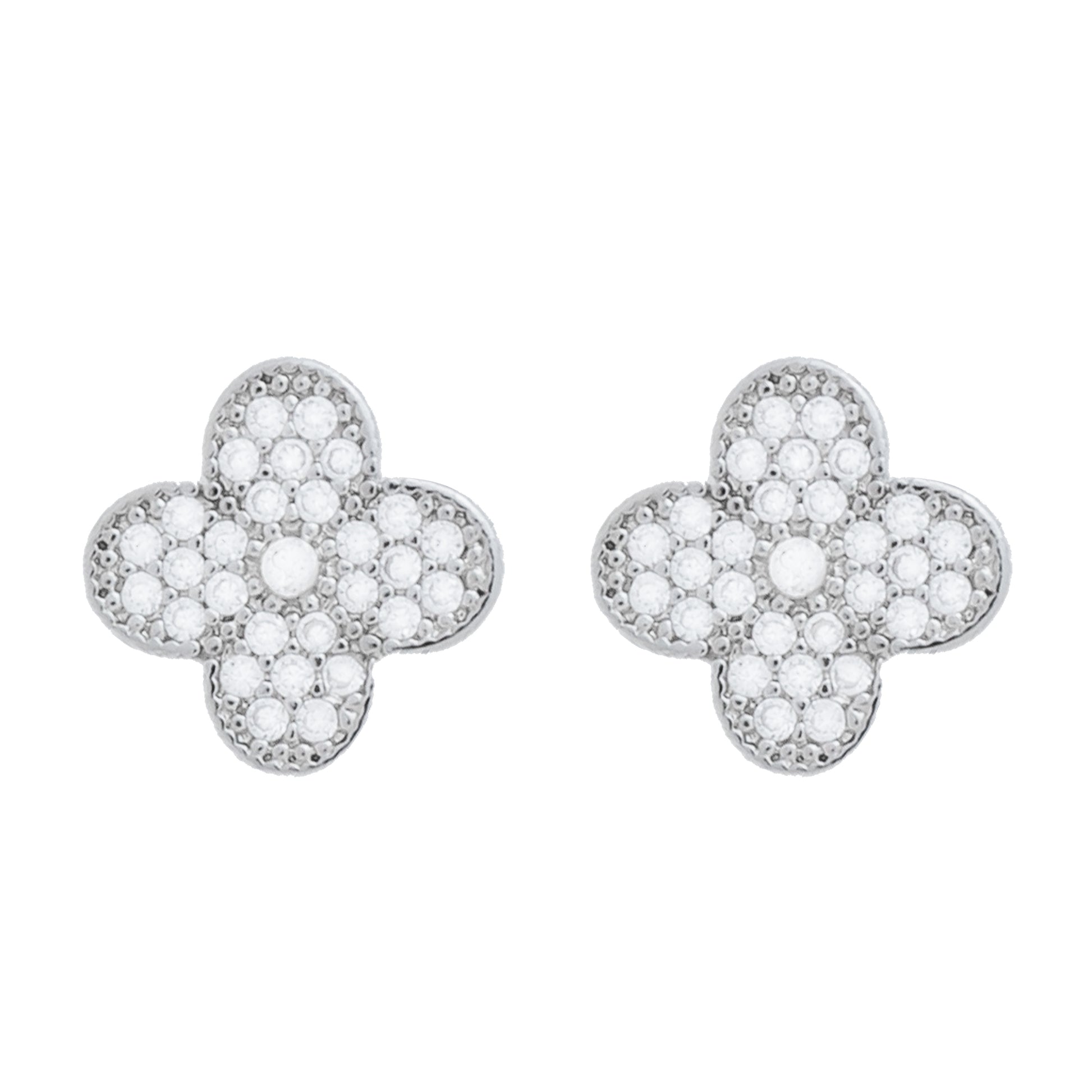 Conjunto Prateado de Trevo Cravejado de Zircônia